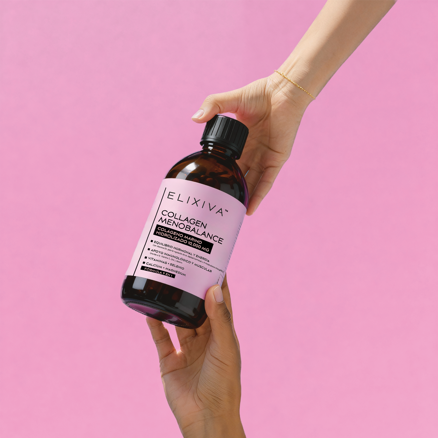 ELIXIVA Colágeno MenoBalance es una fórmula líquida integral diseñada específicamente para acompañarte durante la menopausia.